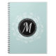 Beautiful notebook with mint blue floral wreath and personalized monogram.
