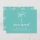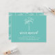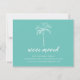 Tropical moving announcement featuring a palm tree set on a aqua blue background with a matching back.
