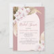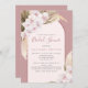 Bouquets of white tropical orchids, pampas grass, and dried palm leaf fronds decorate this bridal shower invitation, with a modern arch, and a monochromatic colour scheme in shades of dusty rose, mauve, and soft pink. Find matching products in the collection.