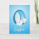 Modern paper cut Easter bunny ear, blue Holiday Card