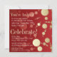 Design your party invitations with this Red customizable invites with design of Gold bubbles floating in a celebration energy on red background. Passionate modern design pattern for an All occasions party invitation cards, suitable for birthdays or any other special occassion or event.