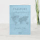 Unique and modern passport invitation design by Savanamm, with world map on the front and beach photo inside. Add your photo and QR code.