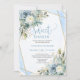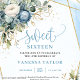 Modern pastel blue white floral sweet 16 invite