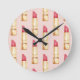 Modern Pastel Pink & Red Lipstick Pattern Girly Round Clock