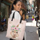 Beautiful quality tote bag in a heavy coated canvas. Shoulder strap is perfect length. Graphics are absolutely beautiful. The printing was great. The pink and black were perfect but the green didn't print as rich in color.