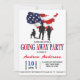 Modern Flag Military Going Away Invitation. Design features US flag and party details on the front and US Flag colours background and stars on the back. Perfect for Going Away, Coming Home or Retirement party. Template can be modified.