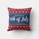 Decorate for Independence Day with this Modern Patriotic Stars Stripes July 4th Monogram Outdoor Pillow. It is modern designed on both sides with the text "Happy 4th of July" in bold white typography calligraphy script lettering on centre of navy blue and white stripes. The background is red with white stars pattern. Personalized with family last name or your custom text.