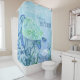 Modern silhouette style sea turtle with modern scroll swirl pattern and a sea glass inspired pattern over a watercolor wash that varies from warm aqua blue to a cool royal blue.  Typography style text design reads, "green sea turtle," and mixes with vintage art elements such as a whale and tropical fish.  In a contemporary colour palette of blues and greens with highlights in navy blue, mint and emerald green  this hand painted watercolor, painted in a loose painterly style is timeless.  Copyright Audrey Jeanne Roberts, all rights reserved.