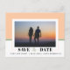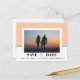 Modern peach and sage green colour block wedding Save the Date photo postcard. The upper of this Save the Date design is of peach colour with a sage green stripe while the bottom is of white with the text. It also features a photo of the couple.