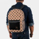 This modern backpack features a black and peachy geometric metaball pattern with a custom monogram in a matching round frame. All colours are customizable!
