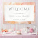 Imagine a wedding welcome banner that feels like stepping into a beautiful garden of soft, fuzzy peach colours. This peach floral background wedding welcome banner combines gentle pastel shades and stunning flowers in a modern and elegant way.