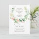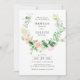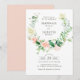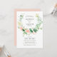 modern peach floral wreath wedding invitation