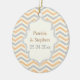 Modern peach, grey, ivory chevron pattern custom ornament design. There is a frame with your names in the centre. Add your text, monogram or initials. A stylish zig zag design using the classic stripes with contemporary yet vintage look in a sense that can be personalized. You can change background and text colour choosing from over 200 colours from Zazzle colour chart. Elegant, classy and playful design to protect your electronic devices.
