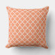 Modern Peach Orange Moroccan Quatrefoil Pattern Throw Pillow