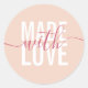 Modern peach white script made with love packaging classic round sticker