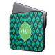 Modern Peacock Feather Pattern Monogram Laptop Sleeve