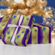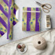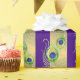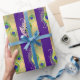 NOTE: This is a flat printed wrapping paper, there are no raised or layered elements, metallic inks or jewels in the design. COLOR PALETTE: eggplant, purple, gold brushed metal look, tan, emerald green, lime, aqua, royal blue, and purple DESIGN COLLECTION: These elegantly swirled peacock feathers were hand painted in watercolor by Audrey Jeanne Roberts. The original artwork beautifully captures the iridescence of the feather in bright, deep jewel tones. There are graphically created diamond like jewels with a gold setting around them that are scrolled along the curve of the feathers. The background is a brushed metal pattern.