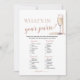 The Modern Elegant Pearls & Prosecco What's In Your Purse Game is a charming addition to your bridal shower festivities. Featuring sophisticated pearls and prosecco motifs, this game invites guests to explore their purses and tally up points for items they have on hand. It's a fun and interactive way to break the ice and get everyone involved, creating lasting memories for the bride-to-be and her guests.