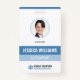 A modern employee staff ID badge featuring a personal photo. The design shows the employees photograph, as well as the employee name in bold letters. Furthermore it includes the employees occupation and badge ID number. The modern employee staff ID badge can be personalized with your company's logo, business name and tag line or slogan. The back side of this ID badge is left blank and open for you to add more information, such as a bar code or employee contact details. The colours can be personalized to match your company's colour scheme.