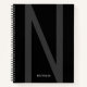 Modern Personalized Big Initial Name Grey Black Notebook