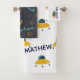 Modern Personalized Blue Yellow Grey Space Kids Bath Towel Set