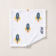 A personalized kids towel set in three different blue, yellow and grey rocket and alien ships designs personalized in block letters. Freshen up your kids' bath décor for spring, summer, fall, autumn, winter. Makes a great personalized gift for Christmas, birthday, and more.