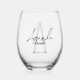 Modern Personalized Bridesmaid's Monogram and Name Stemless Wine Glass