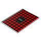 Customize this classic and trendy personalized design featuring a red and black buffalo plaid tartan check pattern with your own monogram initial in modern rustic typography upon a black square.