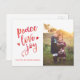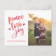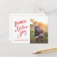 Modern Personalized Peace love joy photo card postcard featuring lovely handwritten typography and hearts. Wish everyone a Merry Christmas in style!