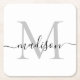 Modern Personalized Grey Monogram Script Name Square Paper Coaster