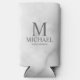 featuring personalized monogram, groomsman's name and title in grey classic serif font style on white marble background.