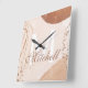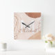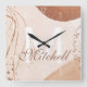 Beautiful, unique, one-of-a-kind personalized clock features a cream, brown and gold abstract design with your own personalized last name in a script font overlay design and the last name monogram initial in a bold font. Personalize this clock by adding your own personal information. Makes a great wedding, anniversary, or housewarming gift. Click "personalize this template" to change the names, fonts, and colours to create a unique one-of-a-kind design. What an elegant accessory for your living room, bedroom, or family room. If you need any help with customization please email me at ybnormalone @gmail.com. Thanks for stopping by www.zazzle.com/Personal_Creations. ©Karen Hall for Personal_Creations at Zazzle.