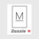 This sticker features personalized monogram and name in black modern sans serif font style.