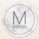 Modern minimalist design features personalized monogram and name in grey modern sans serif font style on white marble background.