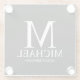 Modern Personalized Monogram and Name Groomsman Glass Coaster