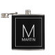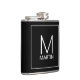 Modern minimalist design features personalized monogram and name in white modern sans serif font style on black background.