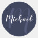 Modern Personalized Monogram and Name Navy Blue Classic Round Sticker