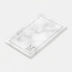 Modern minimalist design features personalized monogram and name in grey modern sans serif font style on white marble background.