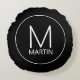 Modern minimalist design features personalized monogram and name in white modern sans serif font style on black background.
