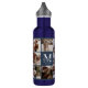 Modern Personalized Monogram & Photo Collage Blue 710 Ml Water Bottle