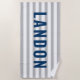 Modern Personalized Name Navy Grey Striped Beach Towel