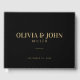 Introducing our Modern Personalized Wedding Reception Guest Book, designed to elevate your special day with elegance and sophistication. This custom guestbook features a sleek black and gold modern minimal design, adding a touch of luxury to your wedding reception. Crafted with a hardcover and high-quality materials, it ensures durability and longevity, preserving your cherished memories for years to come.
