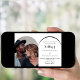 On front: Add your own vertical size photo. A chic white background, black text. Personalize and add your names and details.