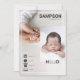 Celebrate your little one’s arrival with this sleek and sophisticated birth announcement, designed to make a lasting impression. The front design features a large, full-background photo that creates a stunning focal point—perfect for showcasing tiny hands, feet, or a sweet newborn moment. A smaller photo of your baby is elegantly positioned to the side, accompanied by modern icons displaying the birth date, time, weight, and length. Below the photo, the warm and welcoming word "HELLO!" invites loved ones to meet your newest addition, with the baby’s full name prominently displayed at the top for a polished introduction.