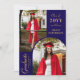 Modern Photo Blue Gold Graduation Announcement features three of your favourite photos of your graduate, with the grad's class year, graduates name and school, university or college, degree, qualification or future plans with the swirly modern white calligraphy script overlay "Graduate". On the reverse add your custom message. Simple, stylish and classy. Created by ©2025 Evco Studio www.zazzle.com/store/evcostudio