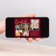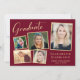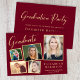 Modern burgundy red graduation party invitation featuring a 5 photo collage of scattered pictures in gold frames, "Graduate" in a stylish gold script, the grad's name in elegant typography and their school and class year in simple typography. Personalize your party details on the back.