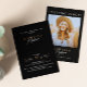 This elegant celebration of life invitation serves as a heartfelt tribute to honour a cherished loved one. The front design features a sleek black background with refined gold and white typography, creating a sophisticated and timeless aesthetic. The balanced layout provides all the essential details for the memorial service in a dignified and respectful manner. The back of the card presents a beautifully framed full-page photo with "in loving memory" inscribed above and your loved one's name and dates of life below, allowing for a personal and meaningful remembrance. Thoughtfully designed with grace and warmth, this invitation offers a touching way to bring family and friends together to celebrate a life well lived. Available as printed cards or an instant digital download.