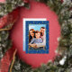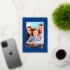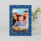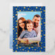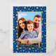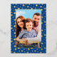 Modern photo Christmas stars navy blue script Foil Holiday Card