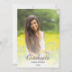 Class of 2025 Graduation announcement card, with a simple photo and an elegant script typography design. With grey customizable lettering, you can add your name and date. You also change the photo with your own image. Great for congratulating that special special graduate.