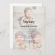 Invite your friends and family to your son or daughter's christening/baptism with these modern 3 photo invitations. The cards feature 3 of your favorite photographs, with a white overlay and a modern invitation template that is easy to personalize. All font styles can be changed by clicking on the customize further link after personalizing.
